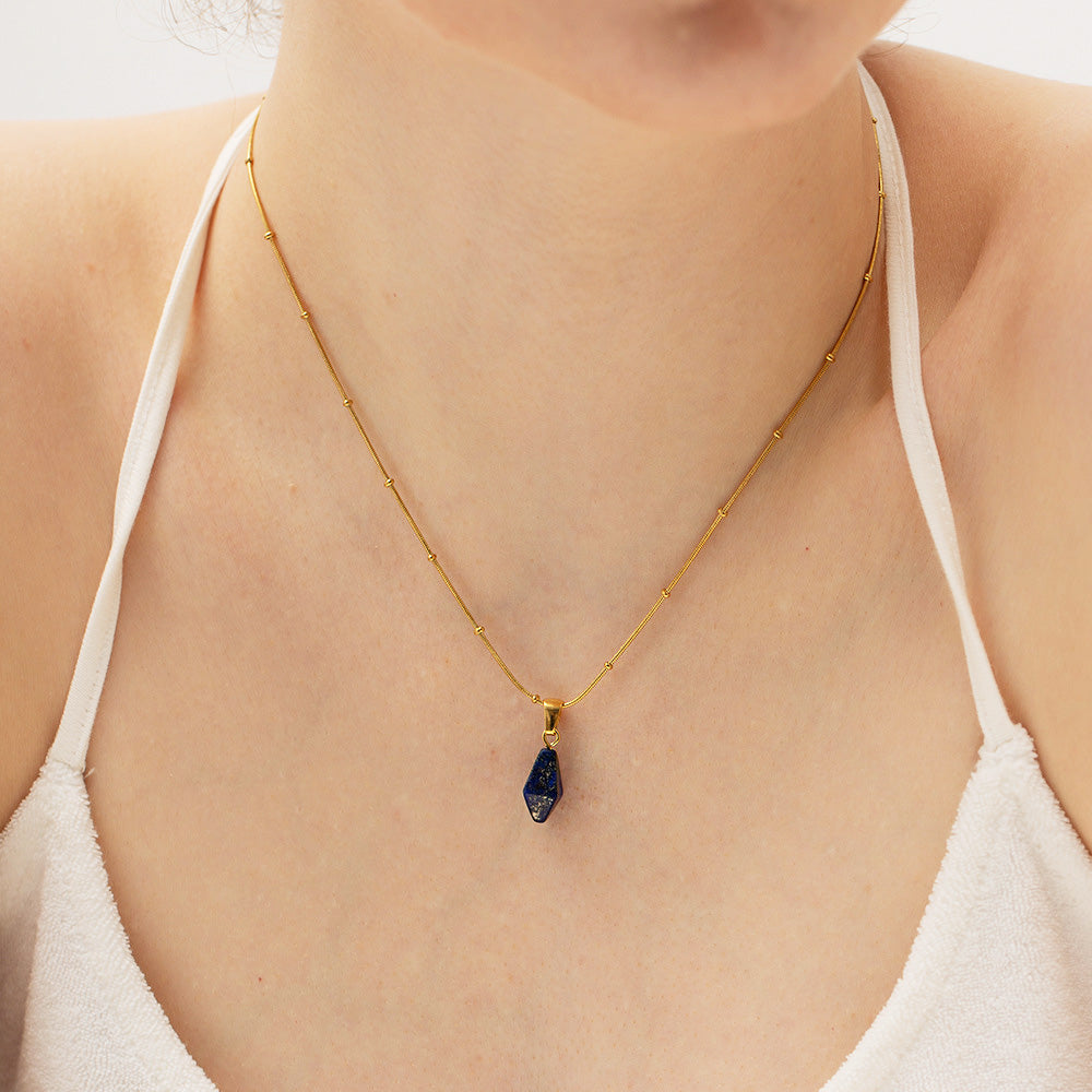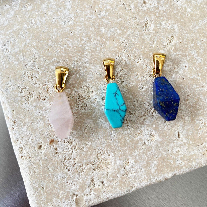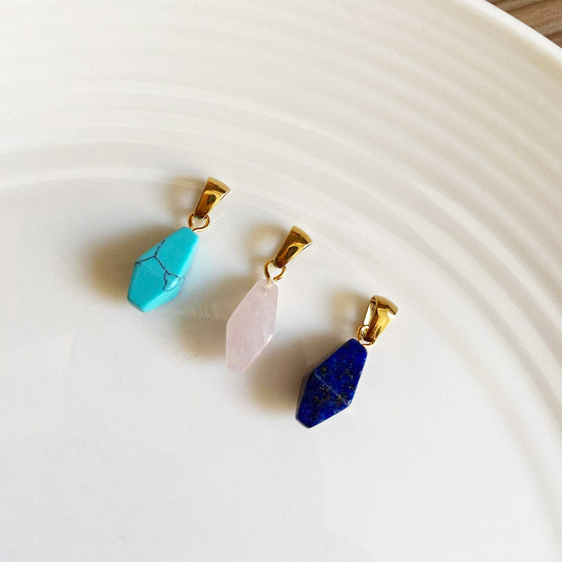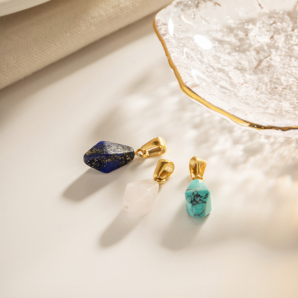 Stainless steel Pink Rose Quartz Turquoise Blue Lapis Lazuli natural stone charm pendants Set of 5