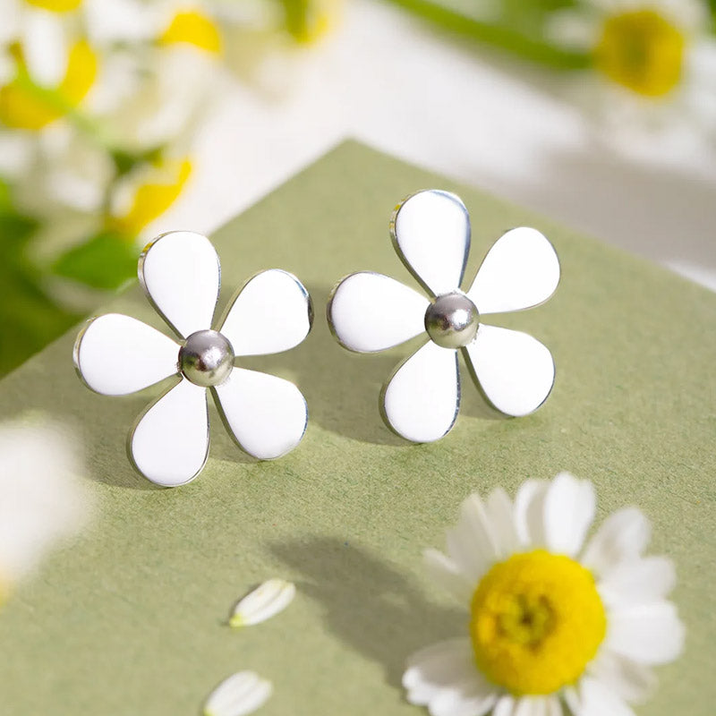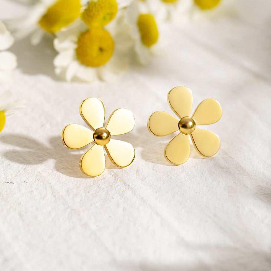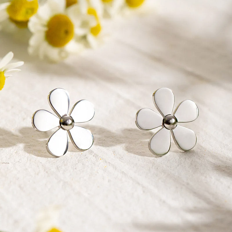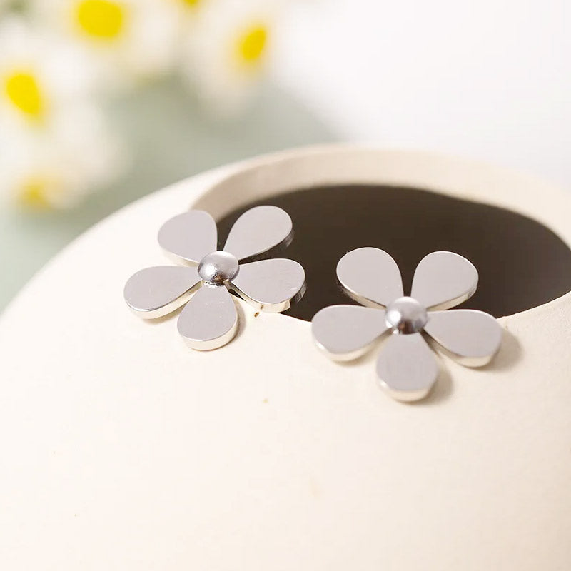 Stainless steel simple daisy flower stud earrings (5 pairs)