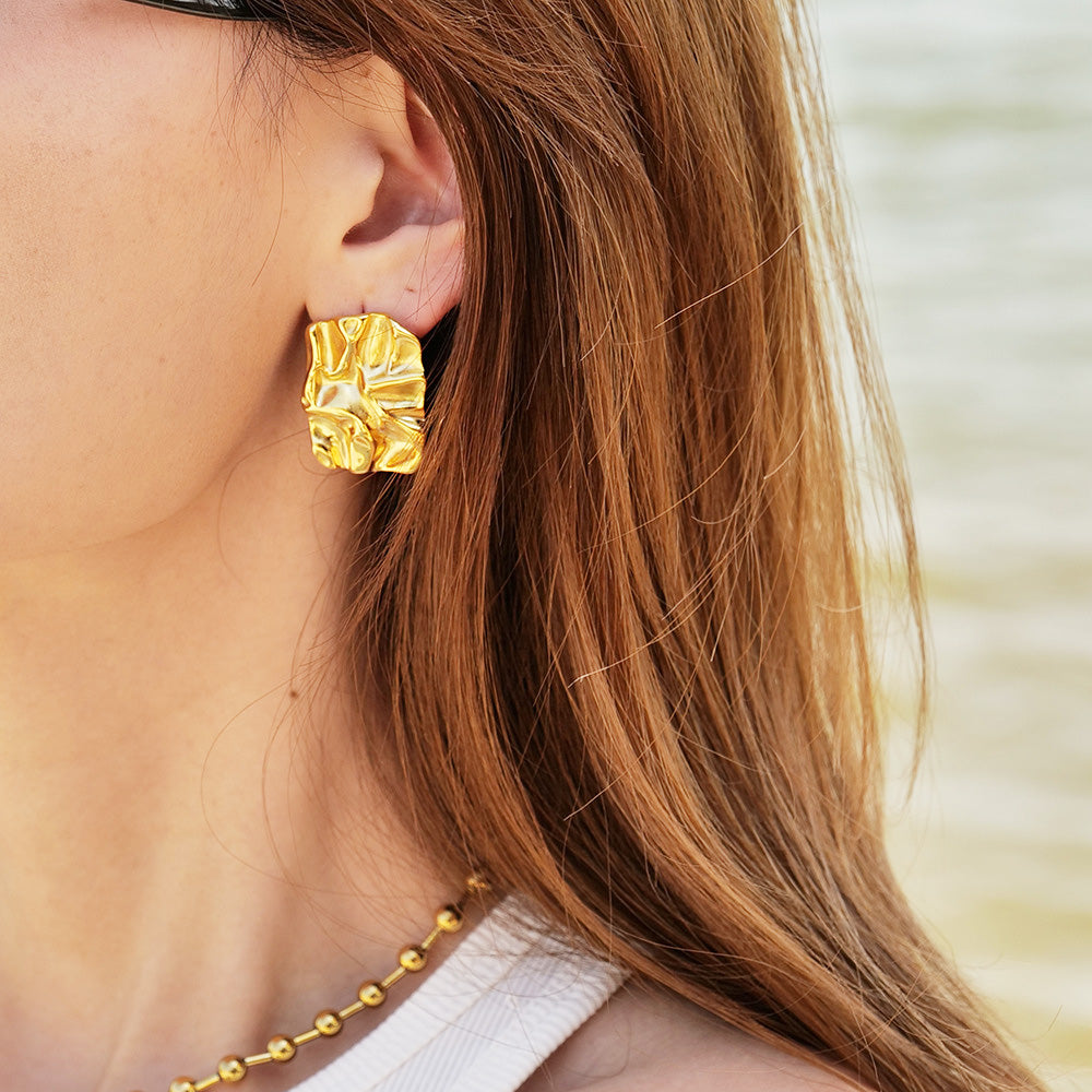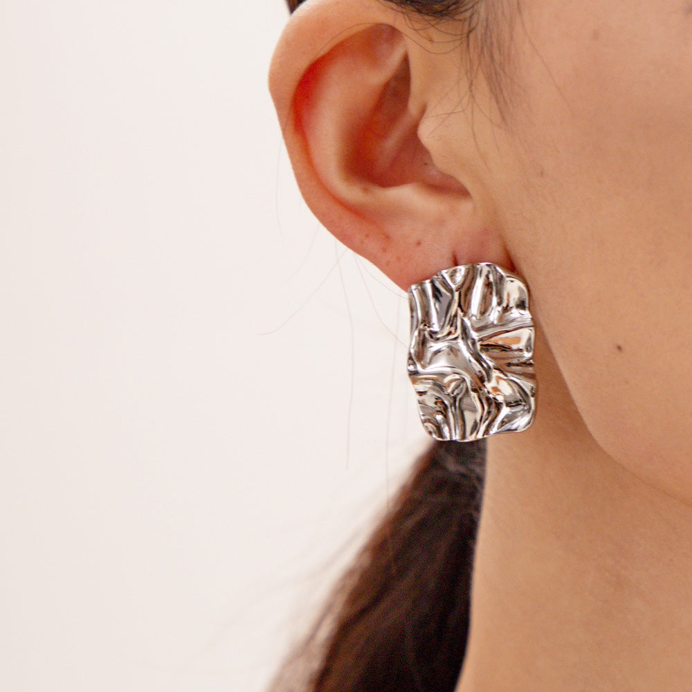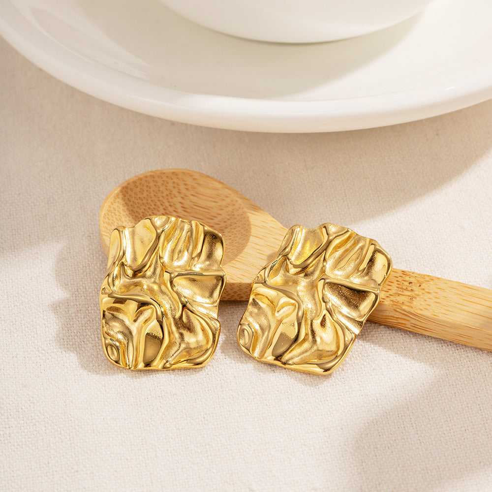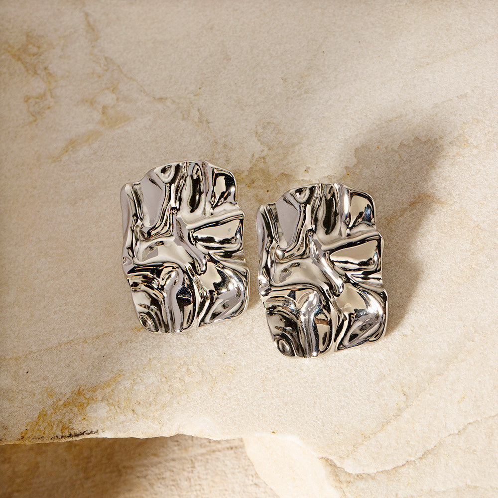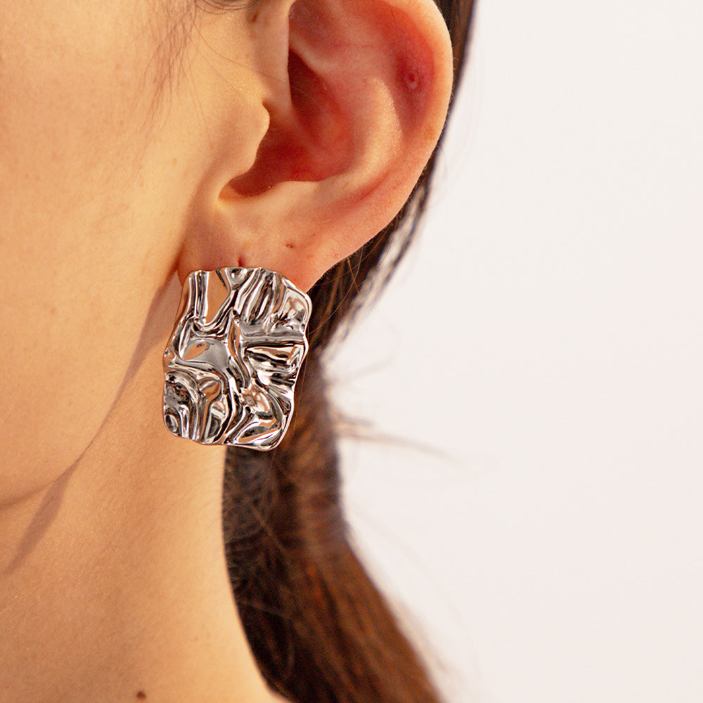 Stainless steel tarnish-free chunky texture rectangle stud earrings (5 pairs)