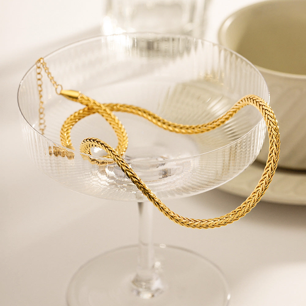 Stainless steel tarnish-free gold chunky twisted rope chain necklaces Set of 5