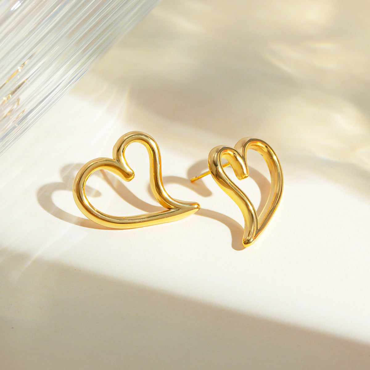 Stainless steel tarnish-free gold hollow heart stud Earrings (5 pairs)