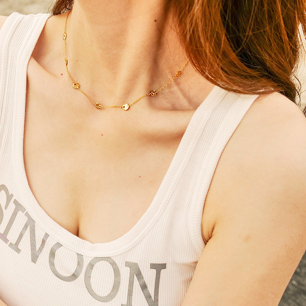 Stainless steel tiny hammered coin disc charm chain choker necklaces Set of 5