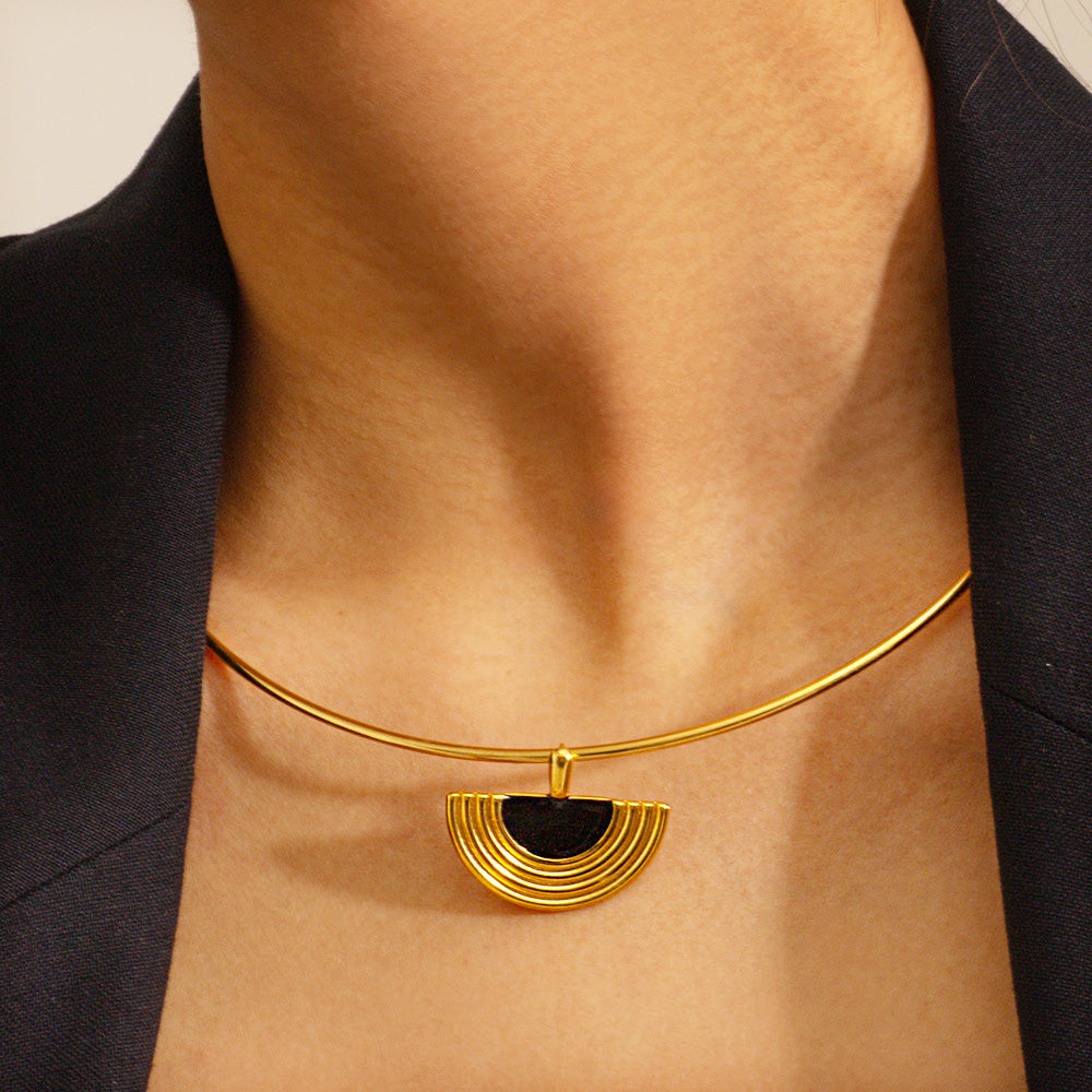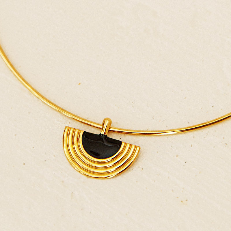 Stainless steel waterproof 18K gold plated enamel Egyptian fan-shaped pendant necklace Set of 5
