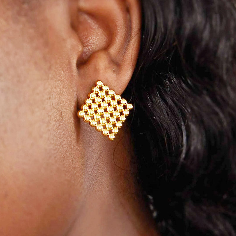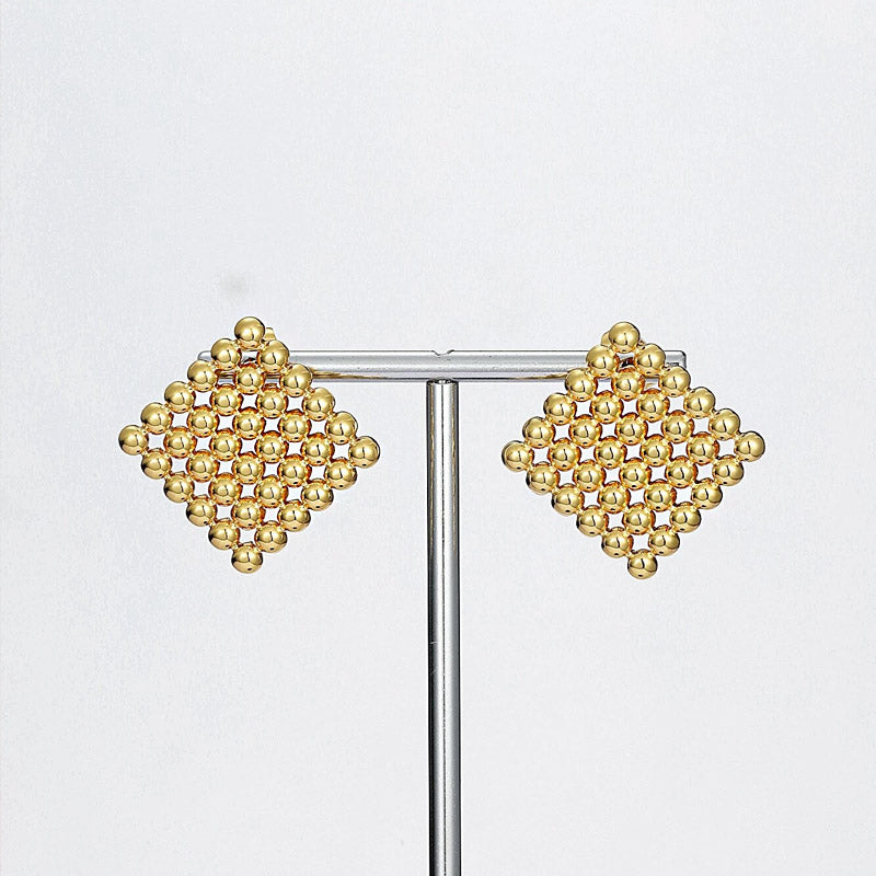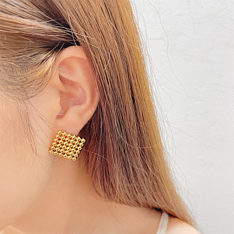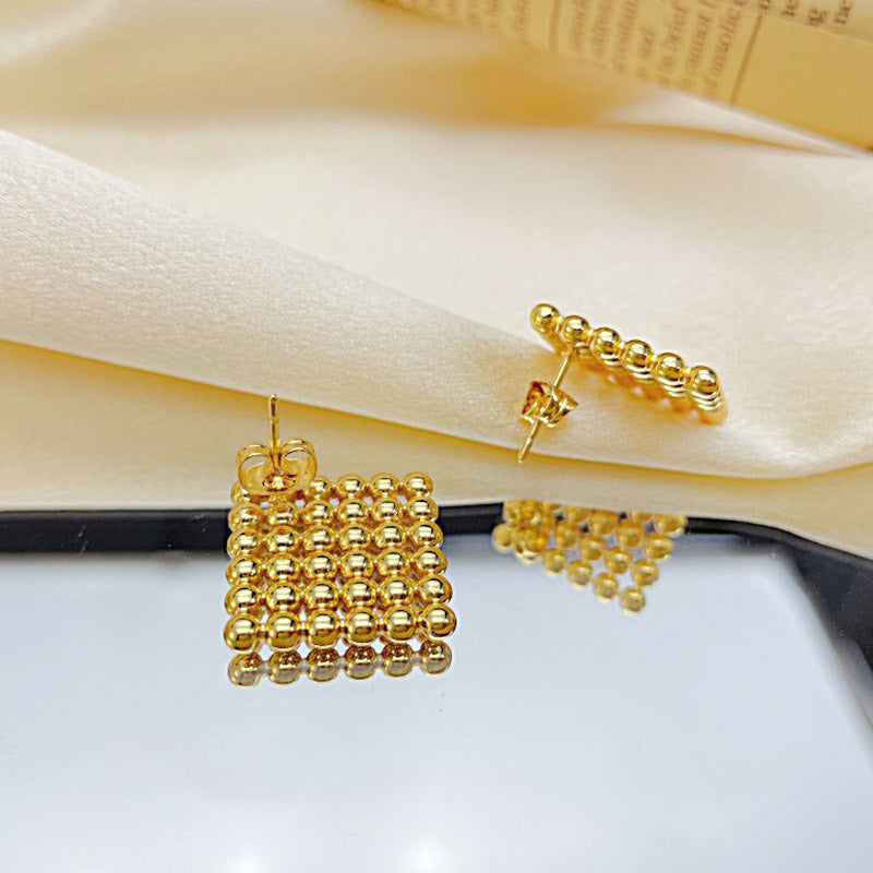 Stainless steel waterproof gold round bead square shaped stud earrings (5 pairs)