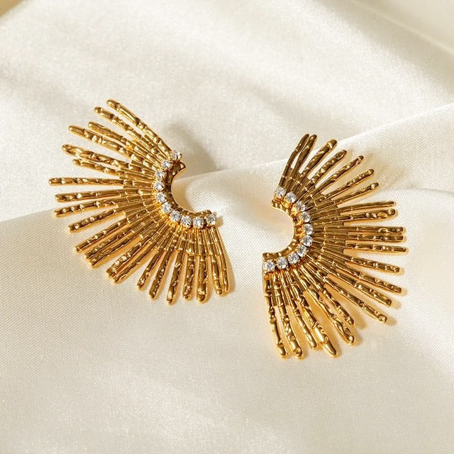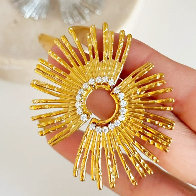 These stylish stainless steel stud earrings feature a large, intricate sunflower design, with each center decorated with a dazzling cubic zirconia stone that adds sparkle and elegance. Designed to be waterproof, these earrings are perfect for everyday wear and will maintain their shine and durability, even in moisture-prone environments. The set includes 10 pairs, offering variety and versatility for mixing and matching. Whether you're dressing up for a special occasion or adding a cheerful touch to casual outfits, these earrings bring a vibrant, nature-inspired accessory to your collection. Ideal for those who love both nature-inspired jewelry and practicality.