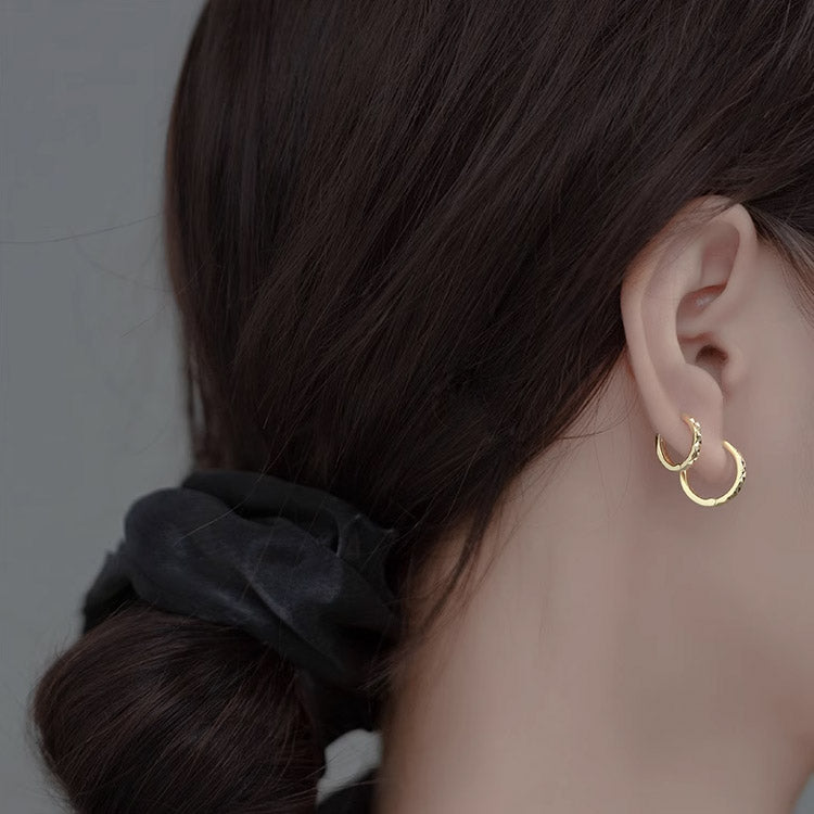 Sterling silver diamond cut minimalist huggie hoops (5 pair)