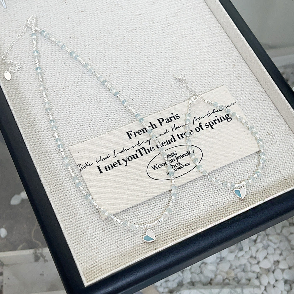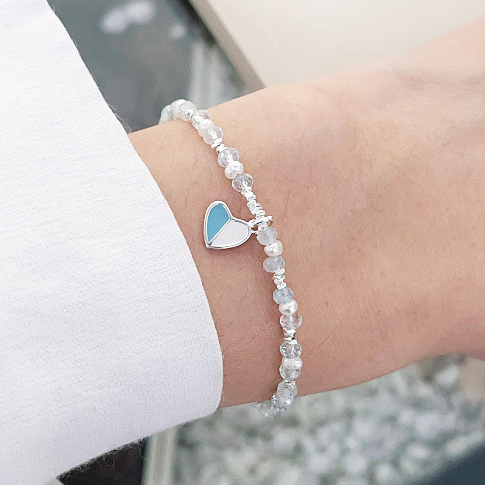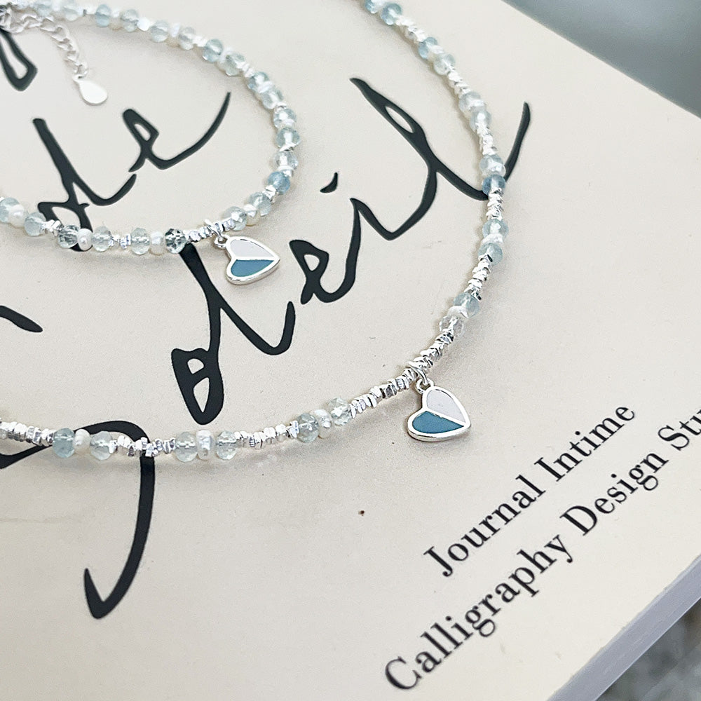 Wholesale 925 sterling silver enamel heart charm pearl and glass bead chain bracelets Set of 5