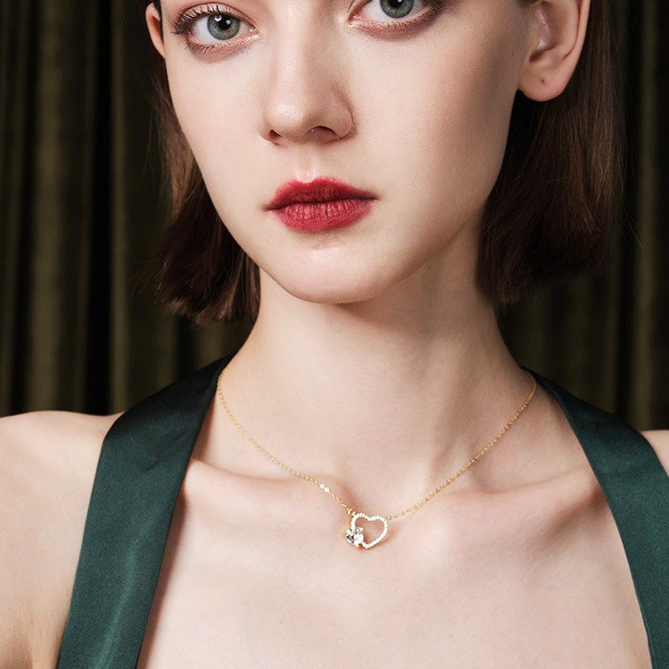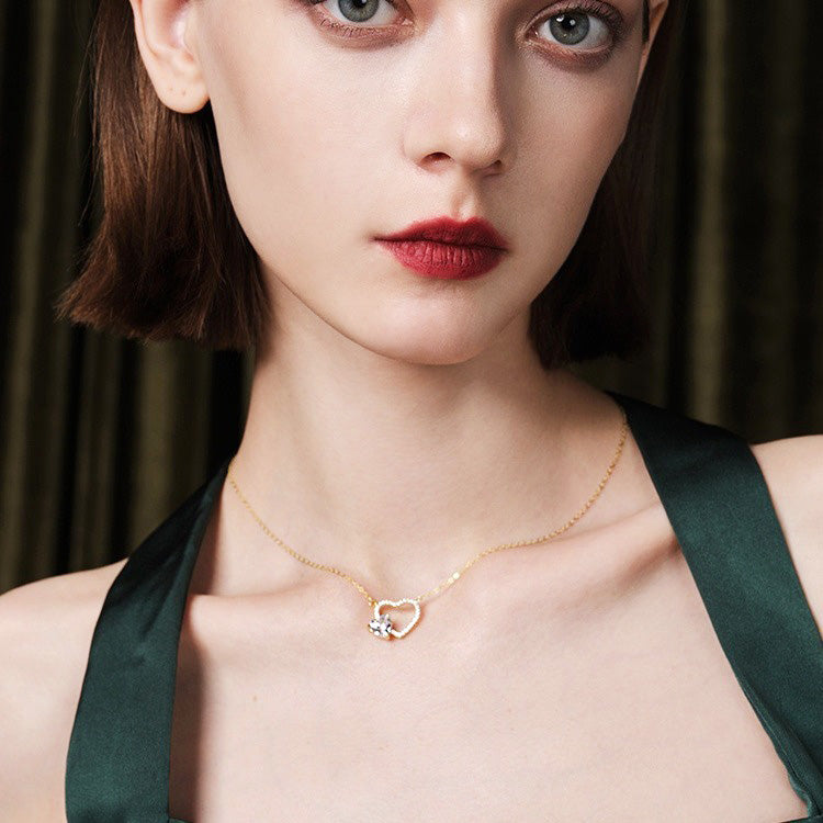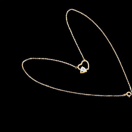Wholesale 925 sterling silver gold hollow heart with heart-shaped zircon stone necklace set of 5