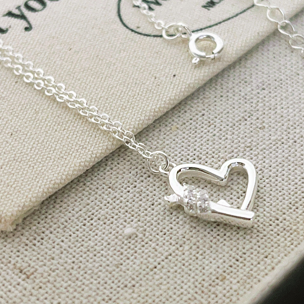 Wholesale 925 sterling silver hollow out heart charm with cz stone necklace set of 5