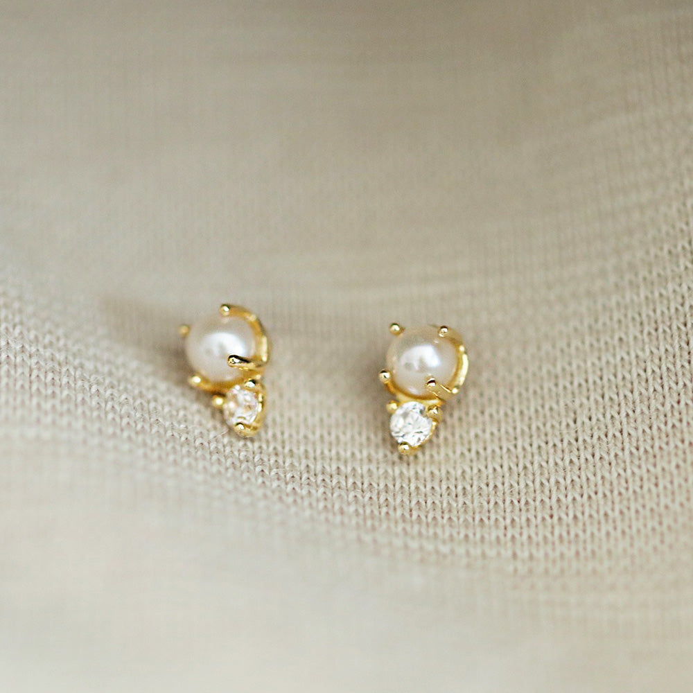 Wholesale 925 sterling silver mini cubic zirconia with pearl stud earrings (5 sets)