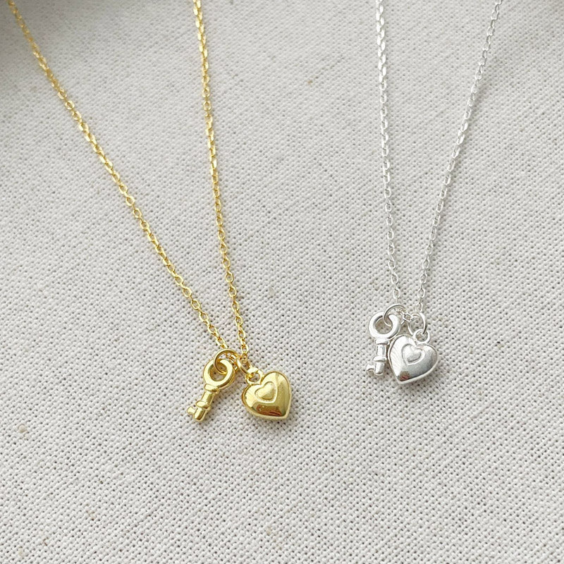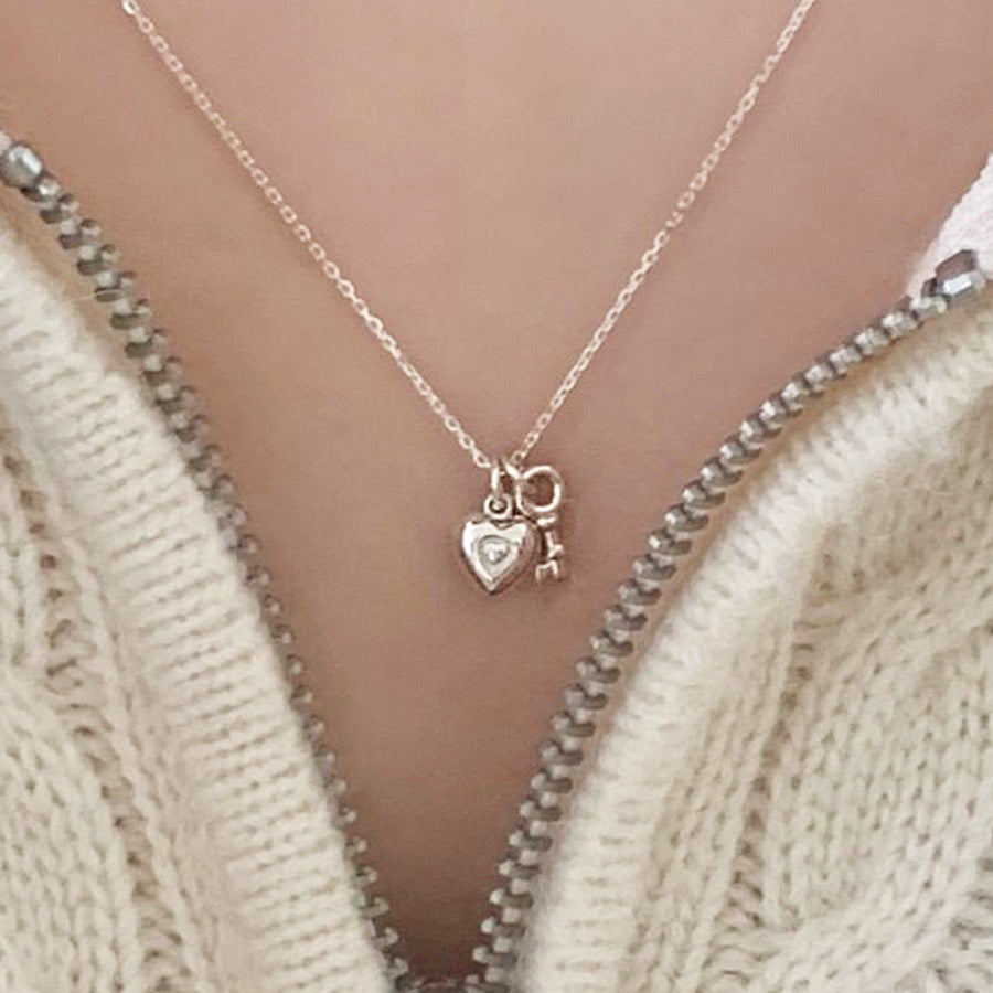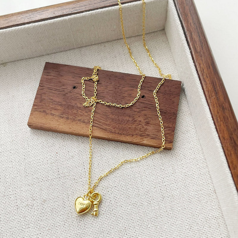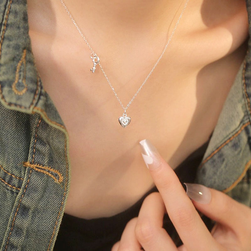 Wholesale 925 sterling silver mini heart key pendant necklace Set of 5