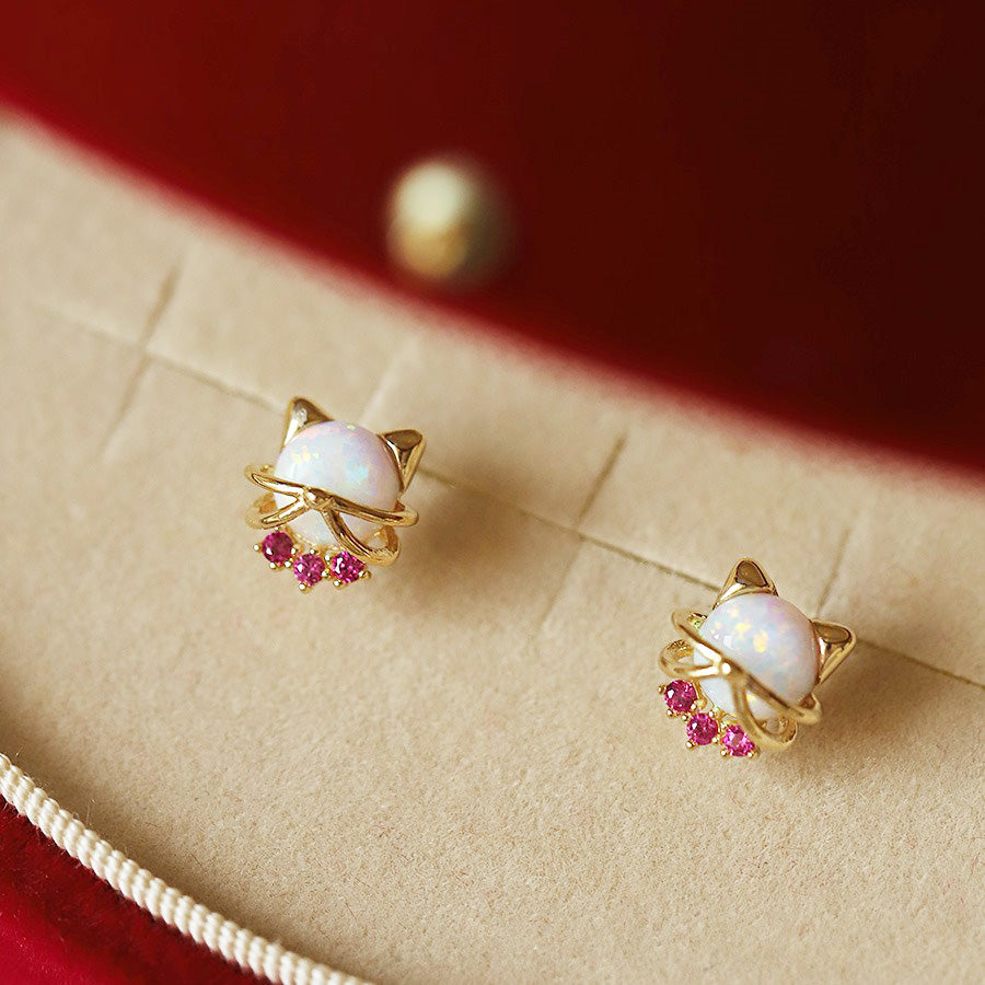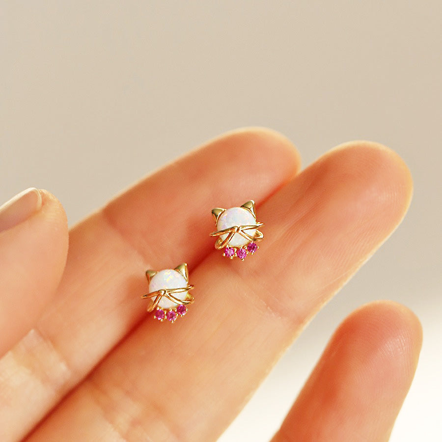 Wholesale 925 sterling silver opal stone cute cat stud earrings (5 pairs)