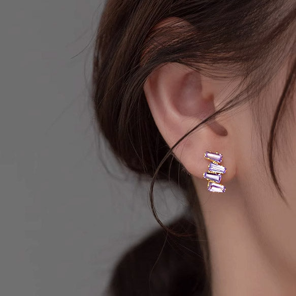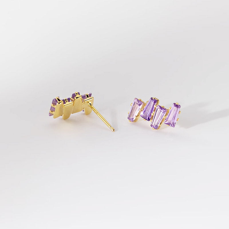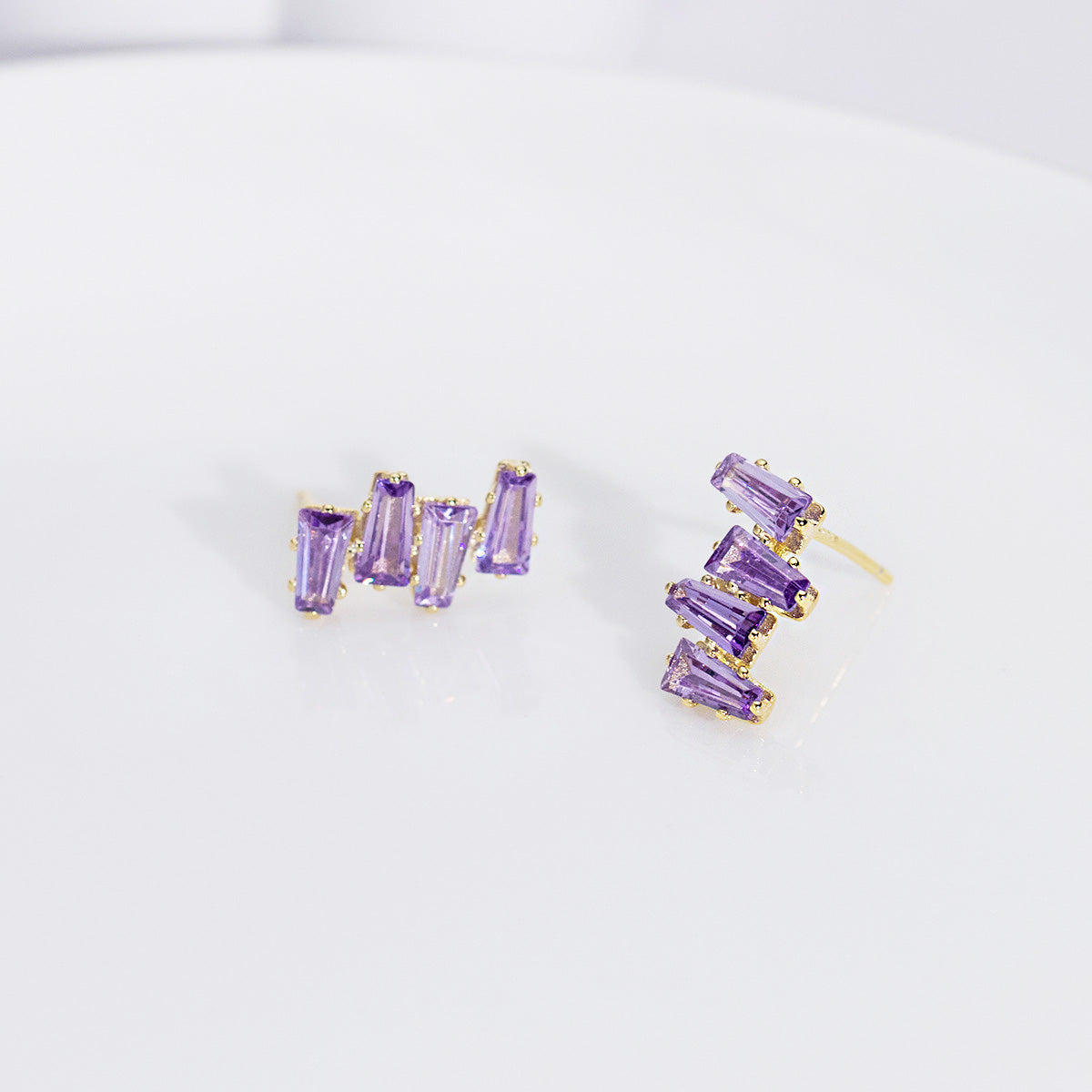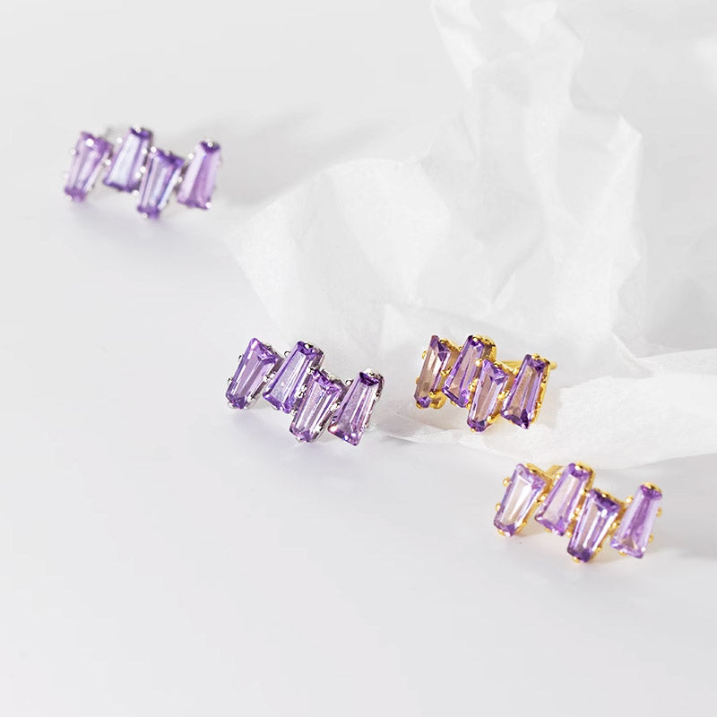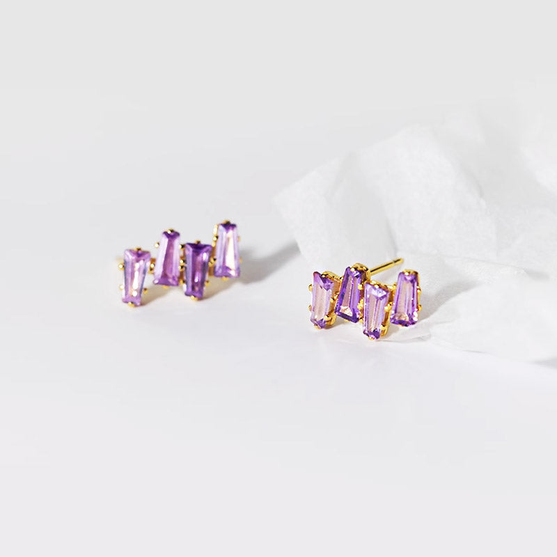 Wholesale 925 sterling silver purple crystal jagged baguette stud earrings (5 pairs)
