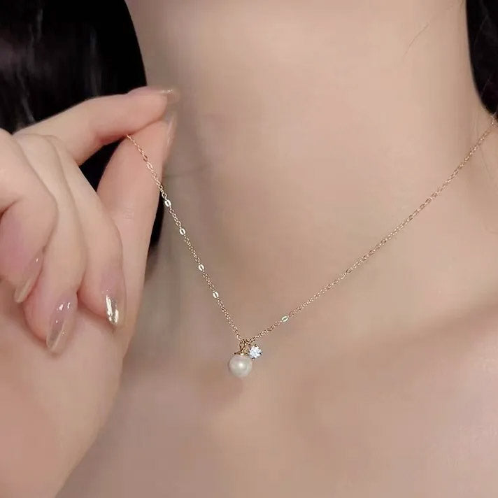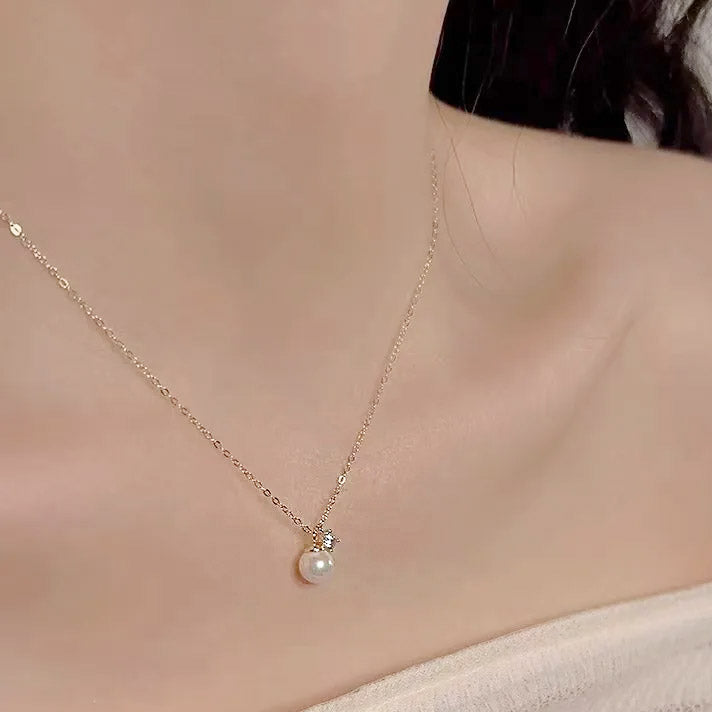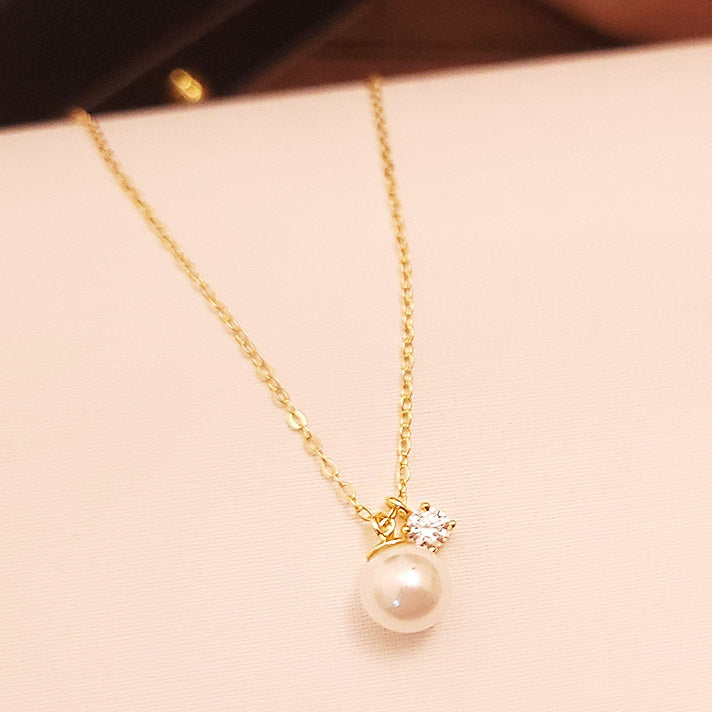 Wholesale 925 sterling silver single pearl with zircon stone necklace Set of 5