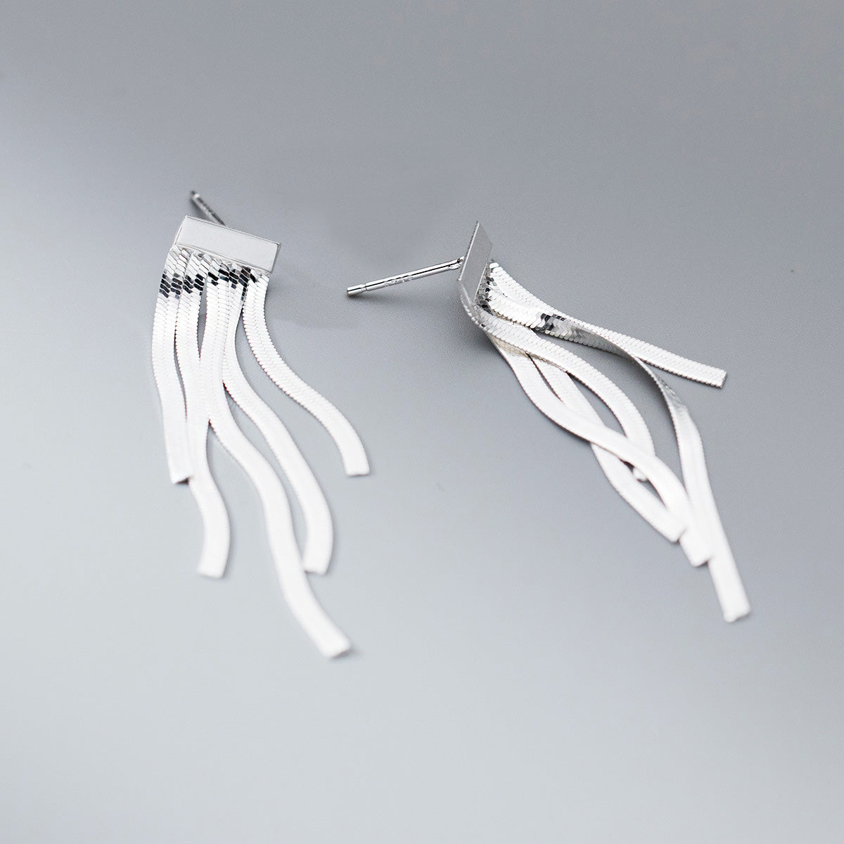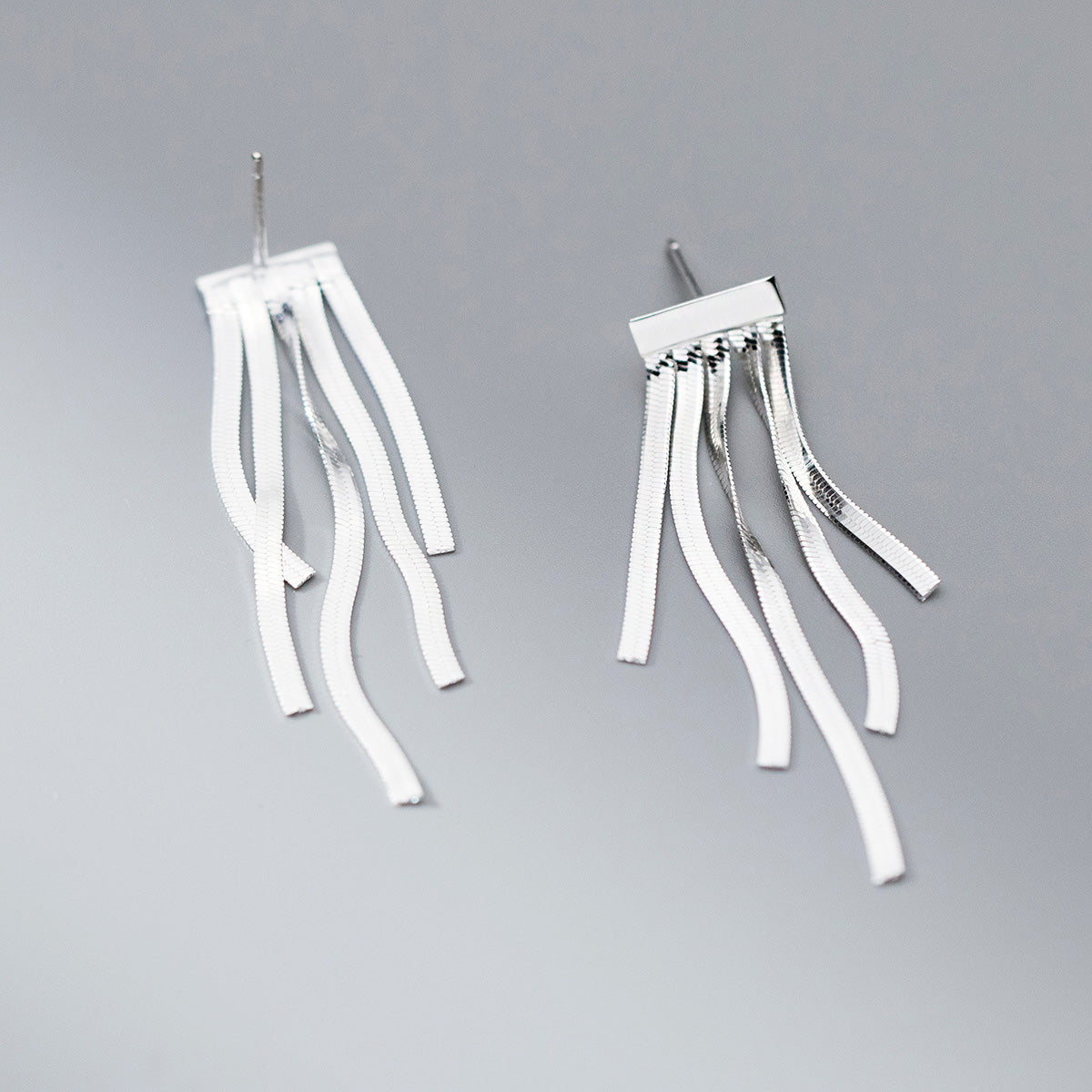 Wholesale 925 sterling silver wide flat tassel drop earrings (5 pairs)