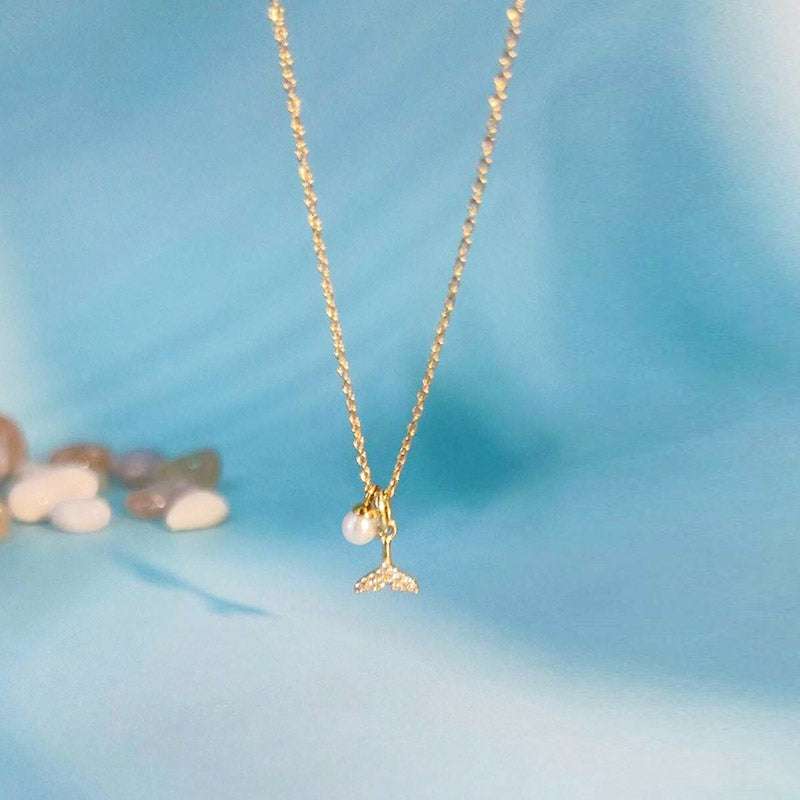 Wholesale 925 sterling silver zircon whale tail with pearl necklace set of 5