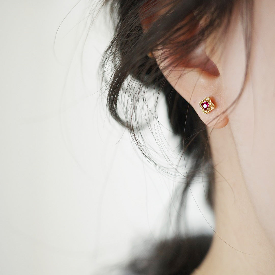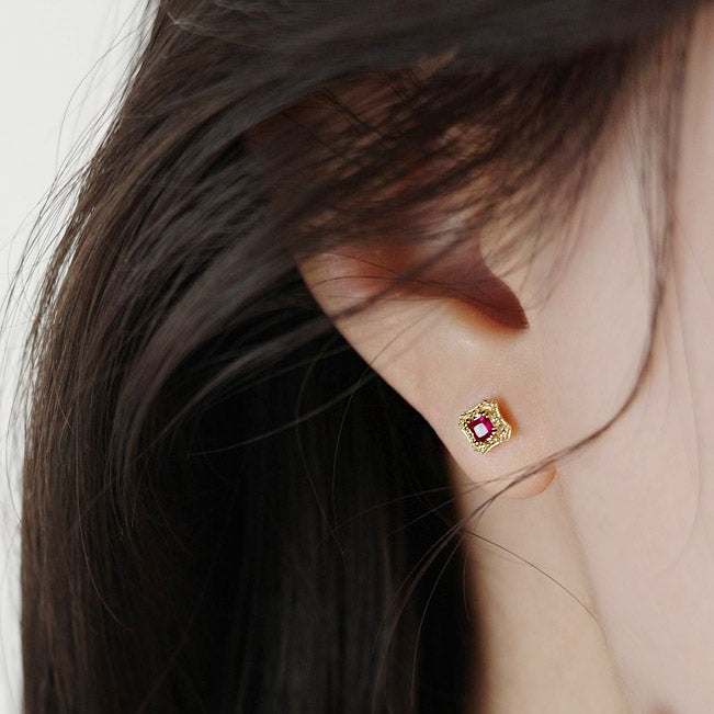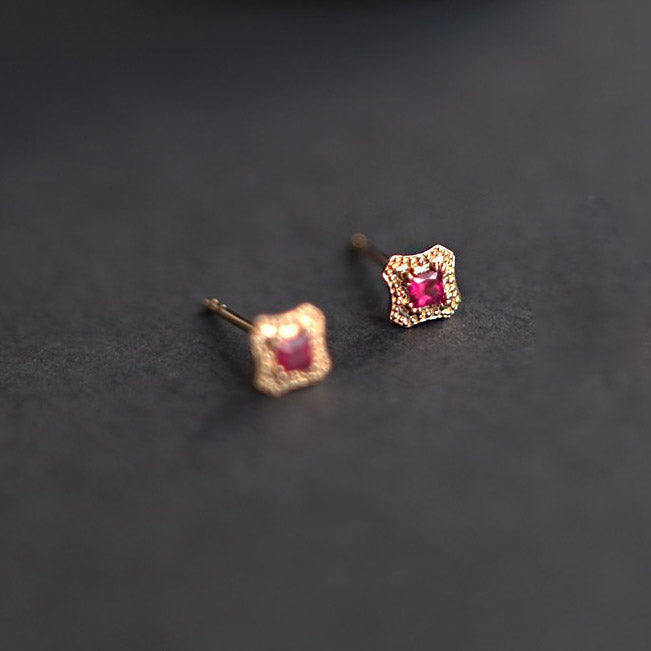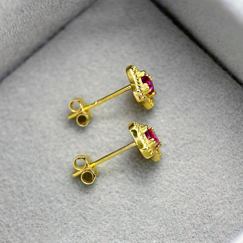 Wholesale vintage 925 sterling silver mini gold ruby red stone stud earrings (5 sets)