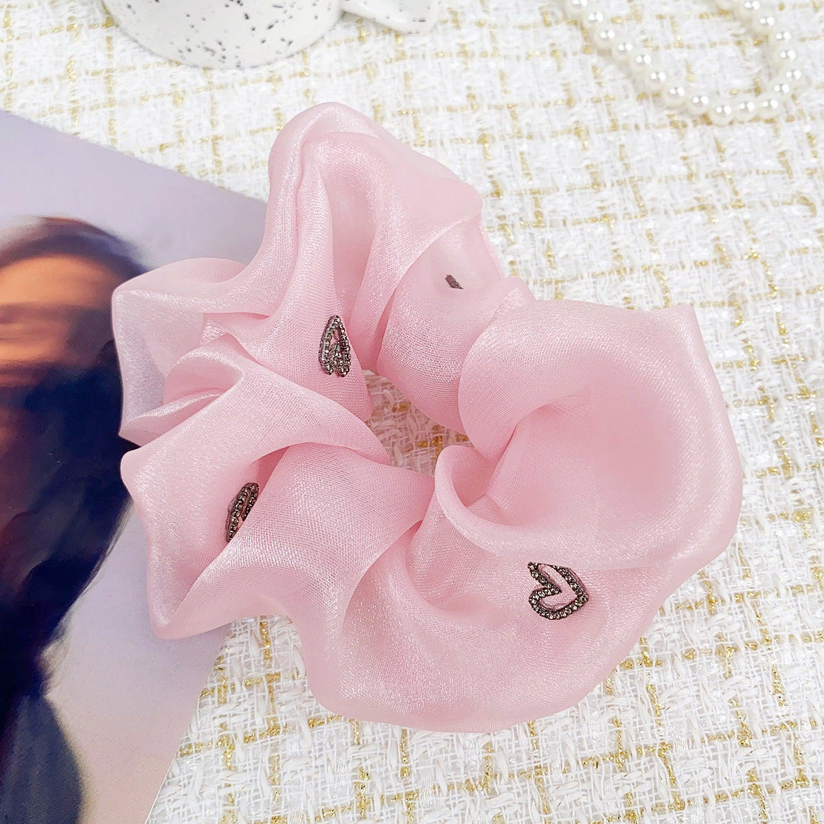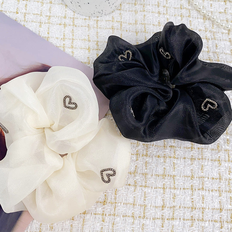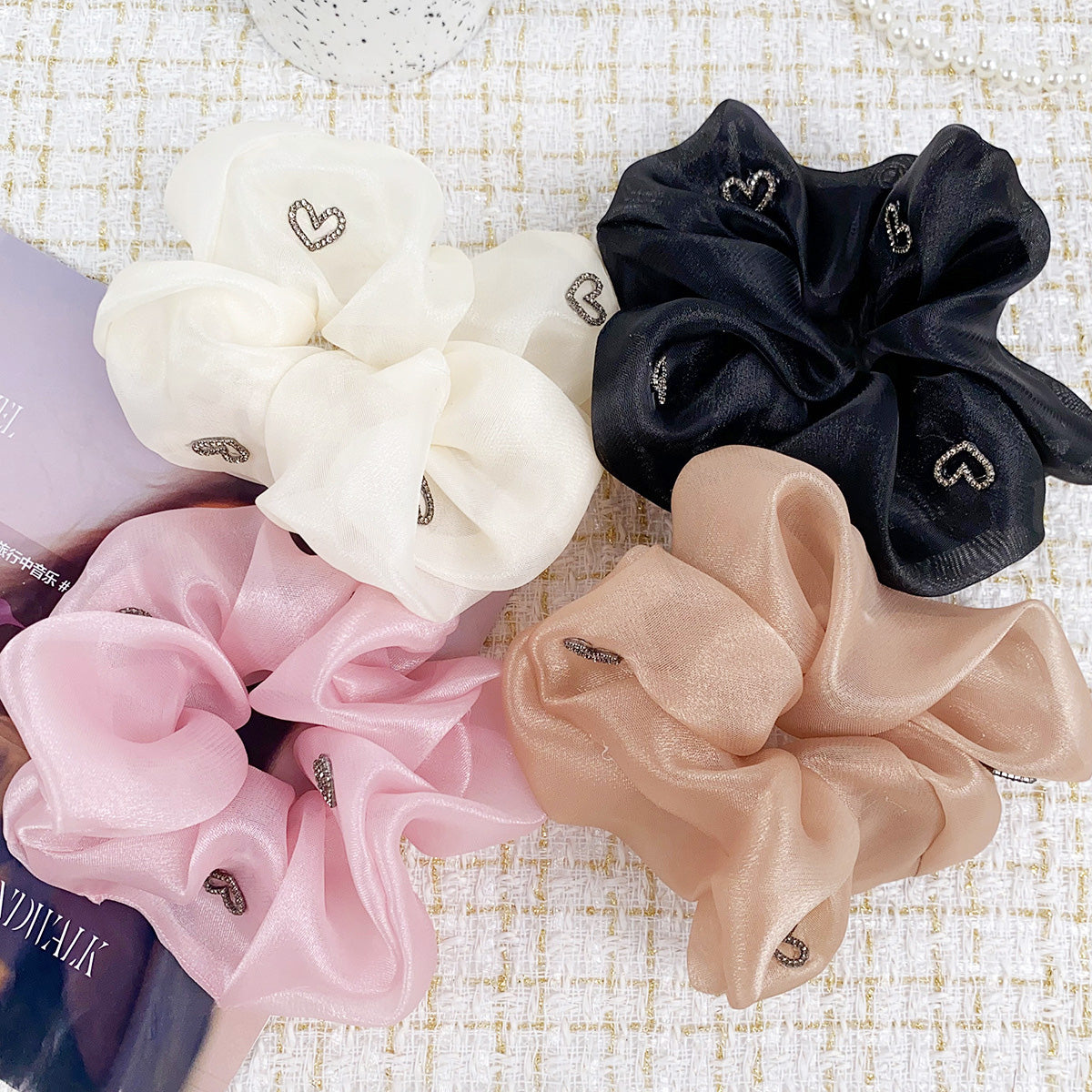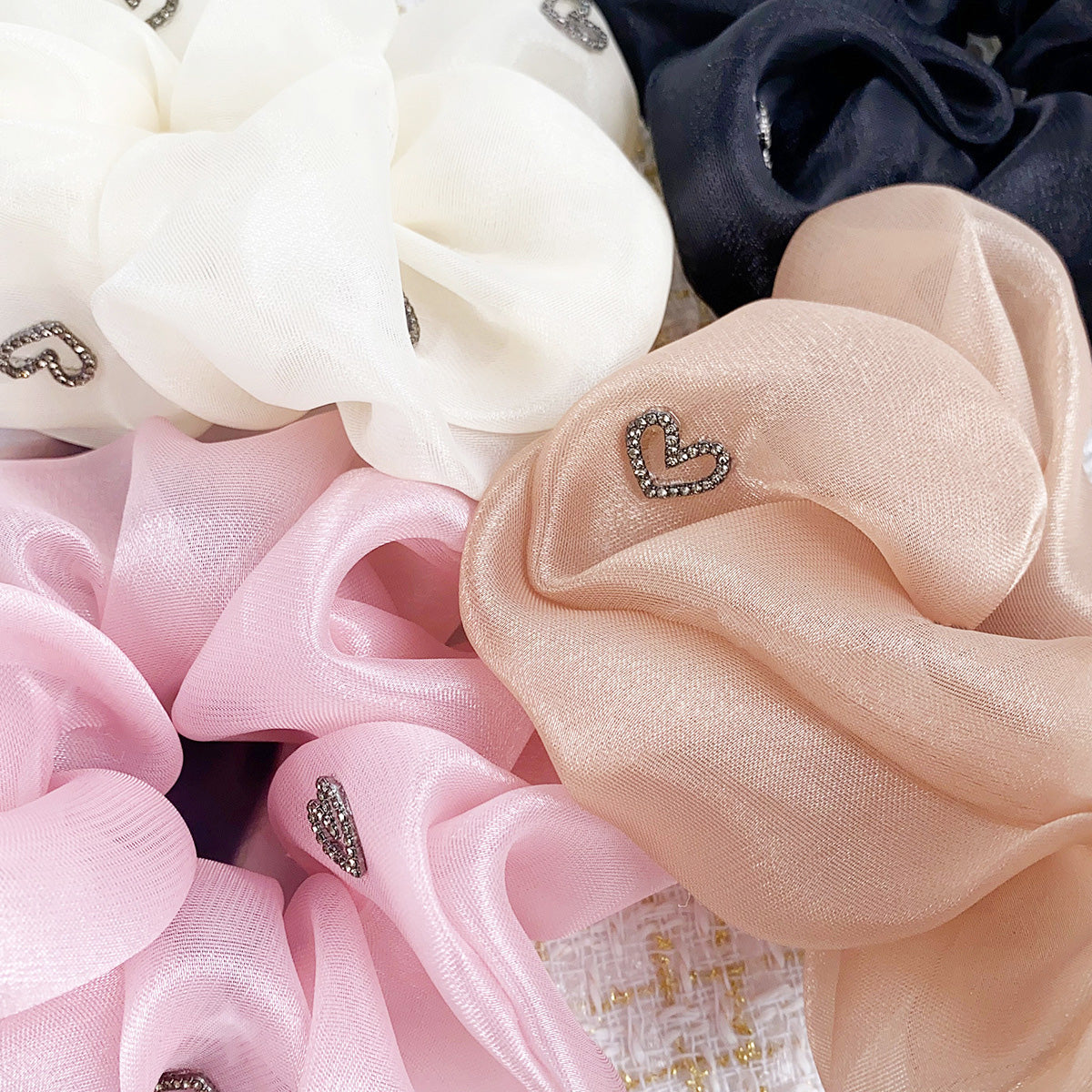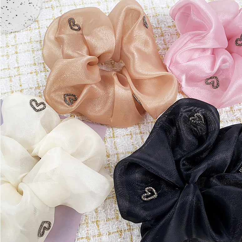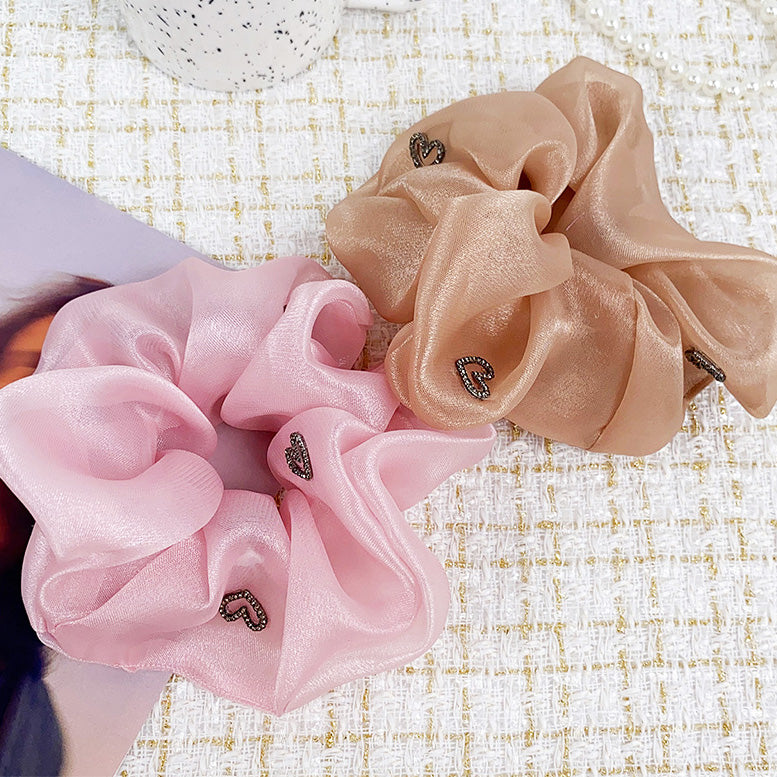 Women heart charms silk elastic scrunchies hair tie bands (5 pcs)